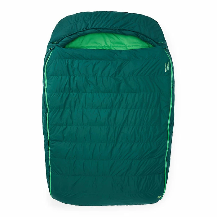The Marmot Yolla Bolly Doublewide 30 Sleeping Bag is a down sleeping bag for keeping two people cozy in the night. Camping with a lover is fun, even more fun when you can share the same bed. The packed with 650 fill power Down Defender, the water-resistant insulation is toasty warm and lightweight. Enough to keep two warm through three seasons of camping, plus space for each person to move. Each side unzips all the way down to the foot, so you can utilize the top piece much like a comforter. A spacious hood warms the head while silicone-printing on the backside of the bag prevents slipping atop the sleeping pad.